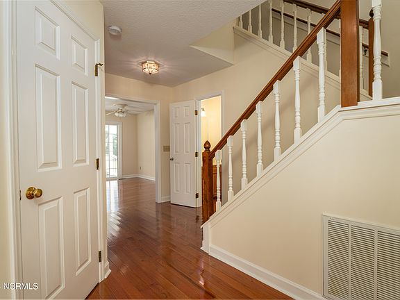 Welcome to 232 Wendover Lane, a stunning four-bedroom, 2.5-bathroom home located in Wilmington, NC; this home offers a perfect blend of space and comfort. Step inside to discover a spacious floor plan designed to meet all your needs. The main level features a formal living room, providing a space for entertaining guests or enjoying quiet evenings with loved ones. Adjacent to it is the formal dining room, where you can create lasting memories. The entire main level has hardwood flooring, which adds elegance and is easy to maintain. This charming home boasts a spacious kitchen that will surely delight anyone. With abundant cabinet space for storing your kitchen essentials, generous countertop space provides ample room, and the pantry is also a plus. Just off the kitchen is a space for casual dining or a perfect place for enjoying your morning coffee or gatherings with loved ones. As you go upstairs, you'll find all four bedrooms and two full bathrooms. Each bedroom is thoughtfully designed to provide ample space and natural light. The carpeted floors in the bedrooms upstairs add a cozy touch, while ceramic tile floors in the upstairs bathrooms are great for wet areas. Head downstairs to the sprawling 12x28 covered back patio provides the perfect setting for outdoor gatherings or simply enjoying a cup of coffee in the morning. You will appreciate the two-car attached garage's convenience, providing secure parking or additional storage space. The backyard also boasts a nice-sized shed for more storage. 232 Wendover Lane offers the ideal combination of tranquility and accessibility. Enjoy nearby amenities, including shopping centers, restaurants, and parks, while being just a short drive away from Wilmington's vibrant downtown and nearby beautiful beaches. Schedule your showing today for this adorable home.