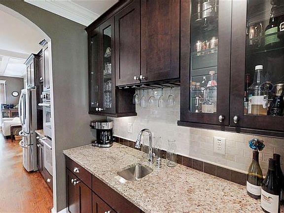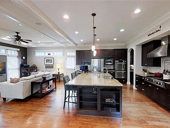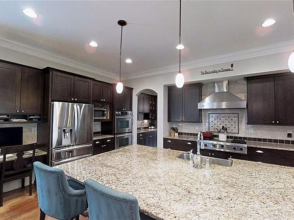 - Kitchen Features: Breakfast Bar, Cabinets Stain, Pantry, View to Family Room, Stone Counters, Kitchen Island, Keeping Room