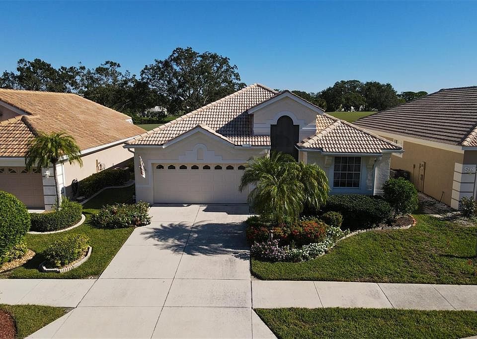 LOW HOA FEES AND NO CDD FEES. OVERSIZED LANAI OVERLOOKING THE GOLF COURSE. HVAC REPLACED IN 2022. UPDATED KITCHEN. Nestled alongside the scenic fairways of the Bobcat golf course, this exquisite single-family home offers the perfect blend of elegance and comfort. With 2 bedrooms, 2 baths, and a den that boasts built-in desk space, bookshelves, and drawers, this property offers a wealth of features. Step inside to discover the allure of engineered hardwood floors throughout, with tasteful tile floors in the kitchen, baths, and a separate laundry room. The master bedroom is a retreat of its own, featuring an en-suite bath with a separate tub and shower, an updated double-sink vanity, and a private entry to the patio. A spacious walk-in closet adds to the master suite's appeal. The thoughtful split-bedroom design ensures privacy and functionality for all residents, while the open great room plan creates a warm and inviting atmosphere. The kitchen boasts granite counters, newer cabinets and appliances, making meal preparation a joy. One of the highlights of this home is the seamless indoor-outdoor transition facilitated by pocket sliding glass doors from the living room and dinette, leading to an oversized patio. This space is perfect for hosting gatherings, enjoying your morning coffee, or simply relishing the serene golf course views. Convenience is a key feature here, with a 2-car garage for your vehicles and ample storage. The property is located within a gated community with access to a community pool, and there are no CDD fees to worry about. Beyond the gates, you'll find yourself in a prime location, with easy access to downtown Wellen Park, downtown Venice, and the beautiful Gulf beaches. This is a remarkable opportunity to embrace the Florida lifestyle in a welcoming and secure community. Don't miss your chance to experience the luxury and serenity of this golf course gem. Schedule your viewing today!