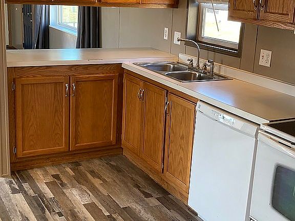 This Two Bedroom Two Bathroom home has new flooring in the kitchen and bath, and new carpet in the living room and bedrooms. It has a large deck off the living room. There is also a shed to put all your tools and lawn mower in. This home is in the Woodland Trails All-Age Community and is subject to monthly site fees