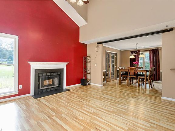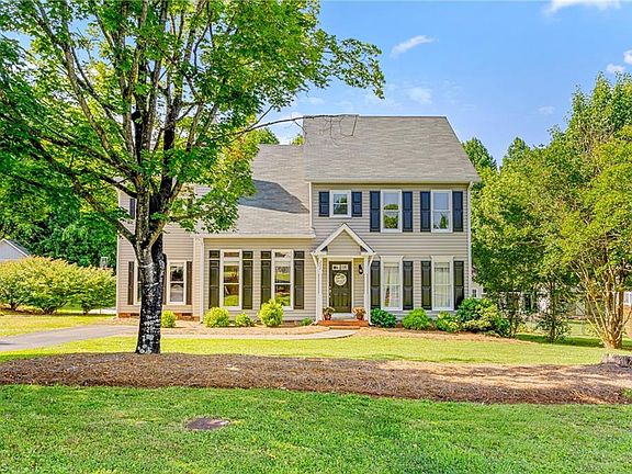 Come check out this 4 bedroom, 3 bathroom home located in the highly sought after North Hampton neighborhood! A spacious great room with vaulted ceiling and fireplace greets you as you enter the home as well as tons of natural light. A spiral staircase in the living room leads you upstairs to a large bedroom as well as two other bedrooms, including the primary. The primary bathroom has a Jacuzzi bathtub separate from the shower. Outside there is a large double level deck with built in seating, a storage building and storage room located on the side of the deck, as well as a basketball court.