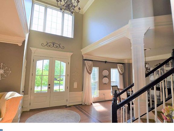 Meticulous home located in the Starfield neighborhood situated in the perfect Collegeville location & award winning Spring-Ford school district. The largest model in the neighborhood, you are sure to be impressed the moment you walk in through the double doors into the grand 2 story foyer. An abundance of natural light reflects perfectly into the formal living and dining area highlighting the custom crown moldings and wainscoting. Just beyond you will find the gourmet kitchen featuring beautiful granite, stainless steel appliances and center island providing all you need to entertain guests & storage space. Your eyes are sure to be drawn towards the wood burning fireplace surrounded with floor to ceiling wainscoting creating a gorgeous focal point in addition to the cathedral ceilings in the family room open to the kitchen. If this is not enough the wall of windows create another stunning view from the kitchen and family room of the lush backyard. Enjoy the perfect weather on the freshly stained deck just in time for cookouts, simply relaxing with a morning cup of coffee or curling up with a great book . A second stairway off the family/kitchen will lead you to a double door entry into the private master suite with high ceilings, 3 closets and a sitting area. Room for two in the master bath complete with his and hers sinks, tiled shower and tub. The additional 3 bedrooms just down the hall will provide you with plenty of room to grow and all offer nice sized closets and ceiling fans. Finished basement offers plenty of space complete with bar area and another office/flex space or 5th bedroom to use as you desire. Basement is not included in square footage. Ceiling fans in all rooms, gas heat, 3 car side load garage, close to half acre lot, low association fees, close to major roads and highways