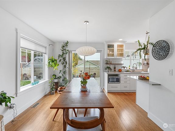 This charming 3-bedroom Craftsman home is a perfect blend of classic style and modern comfort. The remodeled kitchen is a chef's dream, featuring quartz countertops, tile backsplash, stainless hood fan and ample cabinet space. Enjoy the open concept living and dining area with bamboo floors & custom Craftsman door & window trim. Step outside to your private backyard oasis, complete with raised garden space and a serene, tiered patio with accent lighting. Whether you're hosting a barbecue, enjoying the firepit or tending to your garden, this space offers endless possibilities. With its timeless charm and contemporary upgrades, this home is a true gem and just steps away from Cranberry Lake Trailhead!