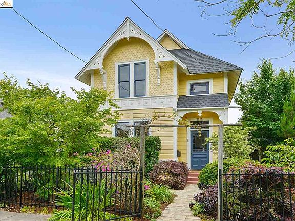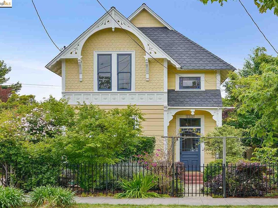 Step back to 1889 with this elegant Victorian home. Enter into a living room with 12-foot ceilings and head to the dining room anchored by an exquisite fireplace. Also on this level a full bathroom and bedroom -could be used as a family room- that opens right into a sunny deck overlooking the yard. The cook's kitchen includes marble countertops and high end appliances. Head up to 2nd story, where 2 bedrooms (one with a loft area) and a charming bathroom await. A beautiful cottage in the backyard could be used as an office/studio. Updates include custom-built double-glazed windows, newer roof, many electrical and plumbing upgrades as well as a retrofitted foundation. The wide lot allows for the beautiful gardens to surround the house creating a sense of calm and privacy. Fragrant roses, a large variety of young fruit trees, raised beds and gorgeous landscaping make this a true gardener's paradise. Located in vibrant West Berkeley, within a few minutes to amenities and commuter bus to SF