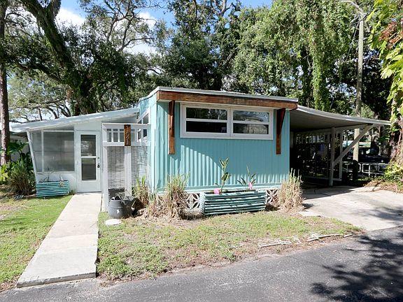 Adorable updated 2-bedroom 1-bath manufactured home nestled in a beautiful, majestic botanical arboreum. This peaceful and serene home has been completely renovated into a modern mobile home, making it an ideal spot for a great, quick vacation getaway or full-time residency. Located in a perfectly situated 55+ community that's close to great shopping, dining, and white sand quartz beaches, all just minutes away. In addition to the indoor living space, there is a side lanai for further relaxation or entertaining, along with a side outdoor patio under a canopy of large oak trees. There is also an on-location European washer and dryer set tucked away on the lanai. The living room measures 11'.10 x 11'.10, the kitchen is 9'.2x 11'.10, the guest bedroom is 9'.4 x 8', and the master bedroom is 11'.3 x 12'. The lanai 15'.1 x 11**. All measurements are approximate and were taken using a laser distance meter.** The kitchen features all-new cabinetry, countertops, and appliances, including a café-style stainless steel refrigerator and an induction cooktop. ** All new faucets in the kitchen and bath. All new lighting. Priced to sell, this home is a must-see by appointment only. With lot rent far below apartment rental prices, this is a perfect way to reside in the affluent town of Sarasota. Monthly lot rent under $1,000 per month includes lawn maintenance, water, sewer, garbage, and recycling curbside pickup. Bring your fishing pole or a good book, this home is ready for you to live your coastal beach life dream. Disclaimer: All listing information is deemed reliable but not guaranteed and should be independently verified through personal inspection by appropriate professionals. We cannot guarantee or warrant the accuracy of this information, measurements or condition of this property. All measurements are approximate. The buyer assumes full responsibility for obtaining all current rates of lot rent, fees, and pass-on costs. The buyer is responsible for obtaining all rules, regulations, pet policies, etc., associated with the community, park, or mobile home.