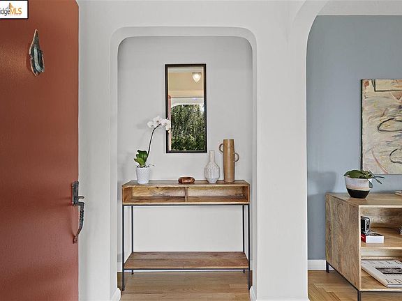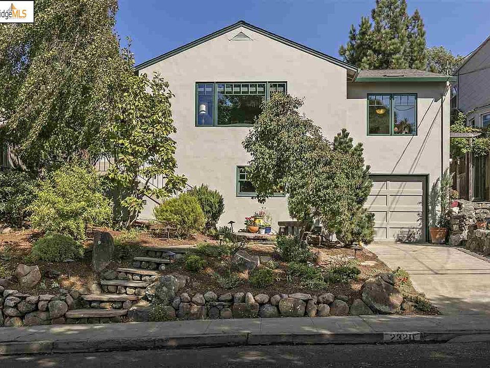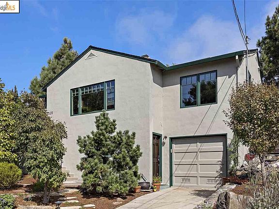 Home with in-law! Stunning 2-bedroom, 1.5 bath home offers a separate space for guests replete with kitchen, full bathroom, and separate laundry. Upstairs in the main house are 2 spacious bedrooms and 1.5 remodeled bathrooms. The main bedroom has French doors to the back garden and a private deck area. Through the front door is the large living room with views toward the Bay, and a gas fireplace with custom wood mantel and stone hearth. Through an archway is the dining area and kitchen. The custom kitchen has stainless steel appliances, stone countertops, and Heath tile backsplash. The French doors off the kitchen lead to the peaceful back garden with organic landscaping and a chickens coop! Paths wind through the backyard past multiple fruit trees, vegetables, and flowering plants. New roof (2020). Marvin windows throughout. Gleaming hardwood floors. Updated electrical. Minutes to Canyon Trail Park, BART, and the transbay bus. Zoned Madera Elementary.