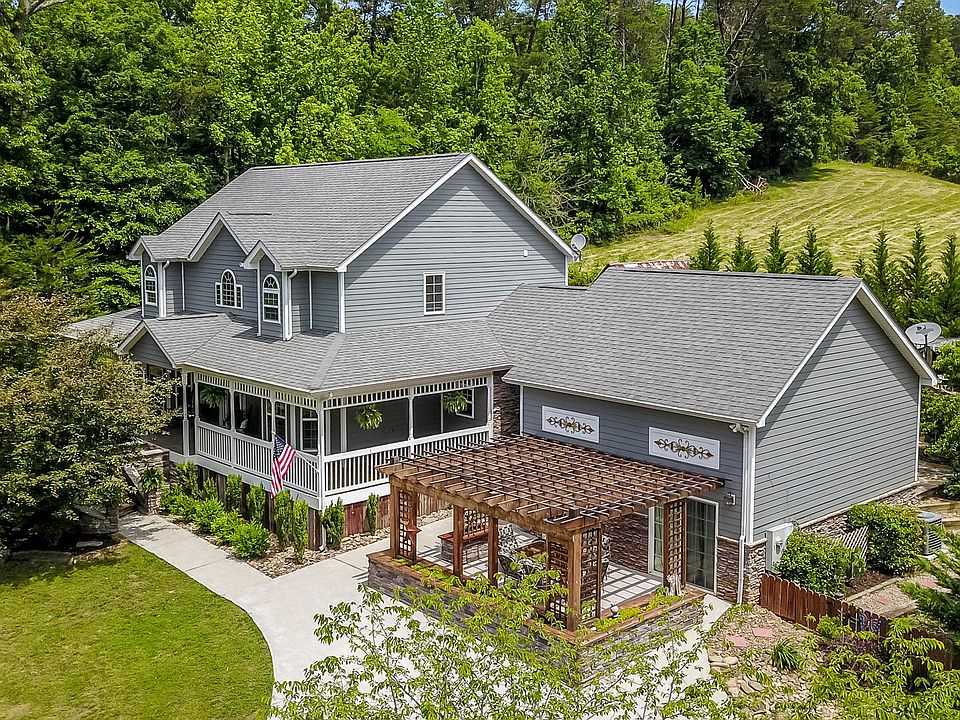 Beautiful Retreat on 5 Acres and seconds from the Lake! Boasting 4,467 Sq ft of living space, this property offers 5 Bedrooms, 3.5 Baths, Formal Dining Room, additional Rec room for pool table and additional seating off main living room and kitchen. An Entertainers DREAM! The possibilities are endless for this space. Large Theater Room with surround sound and soundproof insulation for those Movie Nights and Tennessee Football Game Days! This property also offers two large offices on the main level, one of which has a second Washer/Dryer Hook up. This could be the ultimate Laundry/Craft room. Outdoors you will find beautiful patios on the front and back both offering Pergolas for you to sit and enjoy the beautiful outdoors by the stone fireplace. A Large 2,450 sq ft Detached Garage/Workshop roughed in with Plumbing. CARS, BOATS, MOTORCYCLES and TOYS WELCOME HERE!! As well as an 8x10 Outbuilding, an Adorable 8x12 Gardening Shed for all your tools and a 13x15 Soild Concrete safe room. This property also has driveway access off HWY 72 for easy access with those Boats,Trailers and Equipment. Minutes from the world famous US 129 Dragon! 3 of the 5 acres are fenced and ready for your fur animals- This could be your mini farm you've been dreaming of.