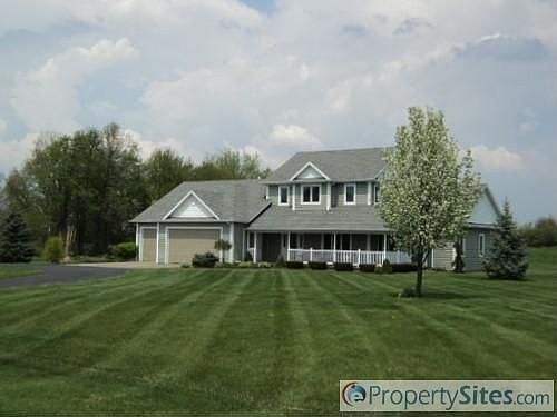 Single Family Home for sale by owner in Fremont, IN 46737. Custom Aldrich built home located in a quiet subdivision between Angola & Fremont called "The Vineyards." This 3 bedroom, 2 bath home has a great floor plan. The main level has a living room, custom kitchen, master suite, den with cabinets, bath and four-seasons room with 9' ceilings. The upper level has a large family room, 2 more bedrooms and a full bath. Features include crown molding, lighted tray ceilings, distressed white wash hickory cabinets with under cabinet lighting, all appliances (gas), security system, irrigation system and multi-room surround system. Not included in the square footage is an over-sized 4-car garage with a drive thru stall from the front to the back of the house. Custom landscaping on 2.38 acres of level property. The front wrap-around porch and back patio has stamped concrete. The driveway is a paved semi-circular for easy access. This beautiful house is in a great location with lots of extras! Located minu