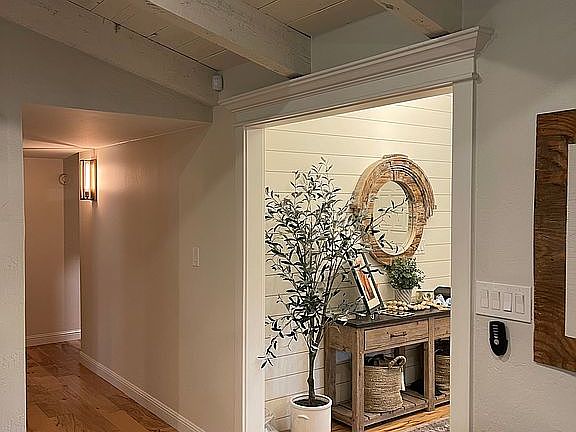 The home has been fully remodeled. New black energy efficient windows. Smooth synthetic stucco. Full landscaping with hedging both in front and back yards for privacy. New hvac, electrical and plumbing. Hardwood throughout the living space. New carpet and custom tile work. Granite countertops. New light fixtures and a newer tile roof. AC units are new. Garage door is fully insulated carriage style. RV parking and brand new gates. Pool has newer equipment and has been re-plastered. Custom beams with tongue and groove soffit on the front porch. Cantera columns. Wood burning fireplace.