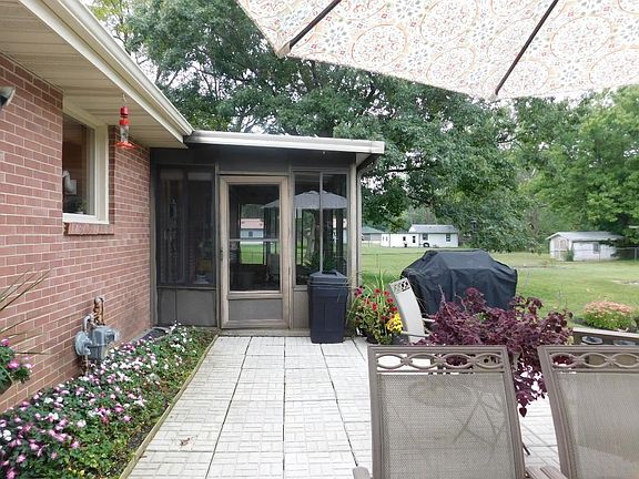 One of a kind! Large corner lot with plenty of room to party! .91 acres. 12x20 storage barn with a loft for storage.Sand box and play set. Open patio to watch the sun go down. A beautiful wood-glass door leads you into a large foyer with tile flooring. Traffic free spacious living room with a fireplace and book shelves. Family type kitchen with that nice tile flooring. Window over the sink to watch the birds and bees. Breakfast bar. Family room. A real man cave in the basement. Room to entertain and exercise. Lots of storage. A three season porch off the kitchen area. TV tower. Newer roof id less than a year old. High efficiency gas furnace. Beautiful hardwood floors in the bedrooms. This house is move in condition.