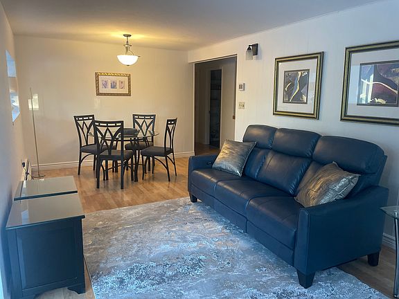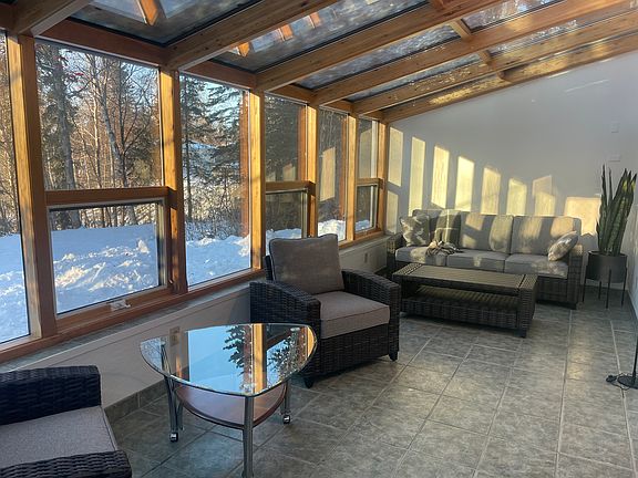 Beautiful location. 5 minutes to downtown. Very close to coastal trail. Less than 10 minutes to hospitals. Unit entrance is on side of house. Living here feels like you are in the woods. Must see! Freshly painted large apartment in one of the nicest locations in west Anchorage. Rental backs onto private greenbelt. Close to town and near coastal trails. Enter lovely apartment through a solarium with heated tile floors. Large room newly furnished and can be easily used year round. Need room for a desk so you can work from home some of the time--this unit has plenty of room for this. Living/ dining room has new leather reclining sofa and matching recliner. New smart TV. Full kitchen with microwave, gas cooktop, self cleaning oven, refrigerator and dishwasher. All dishes, cutlery, pans, etc provided. Bedroom has brand new bed frame and new mattress encased in bed bag and mattress cover. Sheets, comforter included. Bathroom has walk in shower. Towels included. Utility room with your own washer/dryer, iron and ironing board. Dog allowed. No cats please. Additional pet deposit. Outdoor stairs to unit. Off street parking with plug in available. AVAILABLE NOW. Furnished. Includes sheets, towels, dishes, etc. Move in ready. Owner pays for all utilities (electric, gas, garbage, water and sewer) including snow removal and lawn maintenance. Tenant only pays for cable. Dog allowed with extra pet deposit.