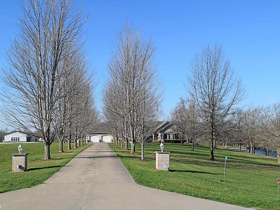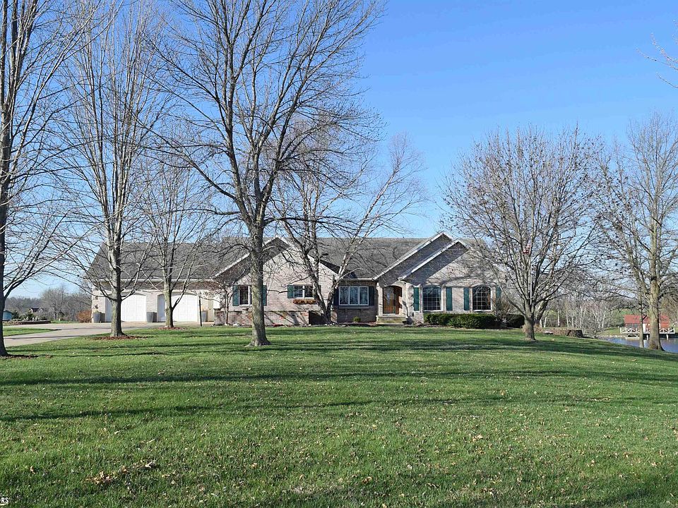 Here is a one of a kind beautiful acreage just minutes from town. Located on a paved road, this rare gem feels like you live in a park. Brick ranch home with 2,200 sq ft on the main floor. Eat-in kitchen, valuted living room with dining area, primary suite, 2 additional bedrooms, office and full bath. Endless possibilities in the unfinished walkout basement. Tree lined paved driveway, large pond with cozy cabin and newer shop (24' x 32') built in 2018 with concrete floor. Enjoy peaceful country living with scenic views.
