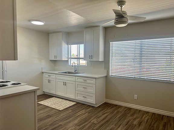 Bright, oversized 2BR/1BA with a smart, open living/dining layout and a private balcony. Inside, everything has been refreshed: a completely renovated kitchen, updated bathroom, new flooring throughout, and ceiling fans for year-round comfort. On-site laundry is steps away. One assigned parking space is included, with an optional second space or garage available to rent. Pet-friendly policies. Approved for SDHC.