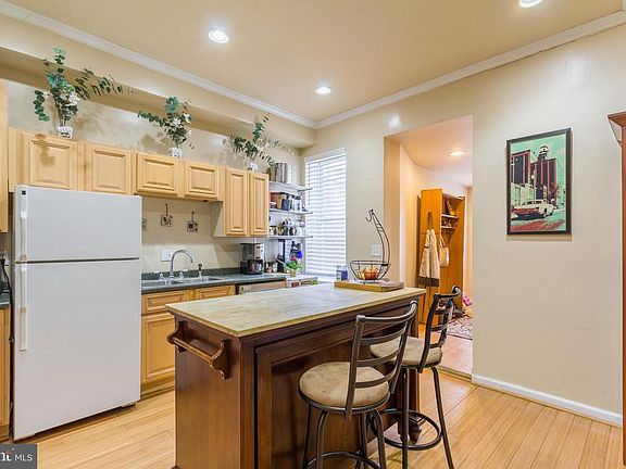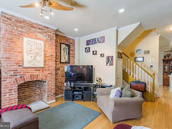 EXCEPTIONAL 3 LEVEL ROWHOME WITH LARGE ROOM SIZES AND TONS OF CHARACTER AND CHARM! Wood floors & crown molding throughout the main level, spacious living room w/ exposed brick, eat-in kitchen w/ island (can stay), main level laundry and half bath, 2nd level Master suite w/ bay window & full bath featuring dbl sinks, whirlpool tub, & separate shower, 3rd level w/ 2 additional bedrooms & 1 full bath, and private rear patio - perfect for enjoying warm summer nights! New roof, sump pump, & AC in 2018!