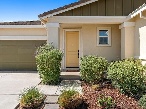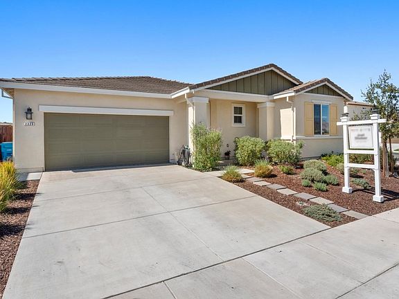 This nearly new single-level home, built by Meritage Homes just two years ago, offers the perfect blend of high-quality construction and modern convenience. Situated on a coveted corner lot in a peaceful neighborhood, this home borders open space and provides picturesque views of rolling hills. Step inside to discover a thoughtfully designed open floor plan featuring high ceilings and a separate formal living area, ideal for both entertaining and everyday living. The oversized master suite is a true retreat with a generous walk-in closet, while the spacious indoor laundry room includes a washer and dryer. The heart of the home is the expansive kitchen, complete with granite countertops, stainless steel appliances, a walk-in pantry, and a large island that offers ample seating. Adjacent to the kitchen, the dining area flows seamlessly to a spacious backyard, perfect for hosting gatherings and enjoying the outdoors. Additional storage shed on side of home, providing extra space. ***Owned Solar*** / Garage wired for 240V electric car charging, and proximity to neighborhood parks and the new walking/biking trail. With easy access to Highway 156 and Highway 25, this home offers both tranquility and convenience. Dont miss your opportunity to make this exceptional property your own!