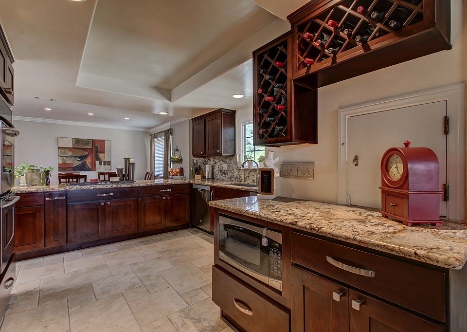 This spacious highly upgraded townhome boasts an expansive chef kitchen with granite countertops upgraded cabinets and stainless steel appliances as well as beautiful distressed hardwood and travertine stone floors throughout. The home features vaulted ceilings brand new windows 2 dining areas wood burning fireplace and an open layout/living area. The Master bedroom is massive with an office area lounge and master bath including a custom sauna jacuzzi walk-in shower and vanity.