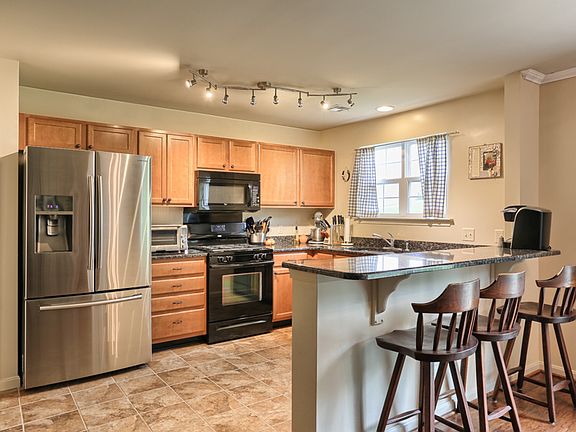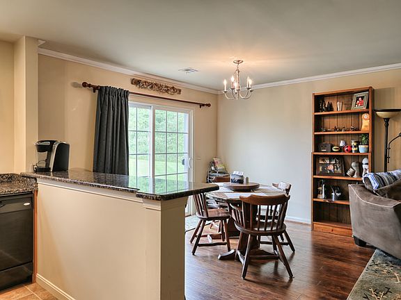 Beautifully appointed end unit town home. Come home to relax after playing with the dogs in the dog park or strolling the walking trail. Hit the 24 hour community gym in the club house or take a dip in the salt water pool after a long day. There is something for everyone in the Bumble Bee Hollow community! Maintenance Free living for a low monthly fee. All lawn care and snow removal included. This town home offers granite counter tops, maple cabinetry, ceramic and gorgeous wood laminate flooring, a 2 CAR GARAGE, NEW CARPET AND PAINT and more for under $200K!! Smart upgrades include RING doorbell, NEAT thermostat, new range, new hot water heater, additional storage shelving in garage.