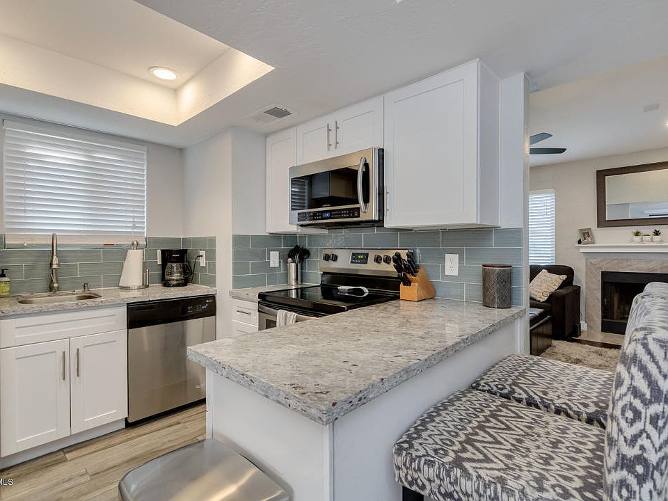 Gorgeous 2/2 condo perfectly located in the highly desirable Arcadia-Lite neighborhood! Completely updated with granite countertops, stainless steel appliances including brand new refrigerator w/ water and ice on the door, tile and laminate floors, 2 full bathrooms, laundry in unit, off street parking with (1) covered space, community pool and hot tub, and obstructed views of Camelback Mountain!