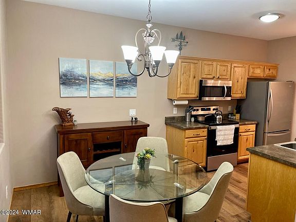 A great opportunity to own a Move-In Ready unit that comes Fully Furnished on the 1st floor of the highly desired Bison Ridge Community. Nestled against the Sitgreaves National Forest, this 2-bdr 2-ba retreat in the woods has it all. Through the front door you are welcomed into the great room that opens to the kitchen with breakfast bar, dining area, and living room. A large covered deck to enjoy and relax in the cool mountain air. Down the hall you will find the Master en suite bedroom that has your own private patio. The Overlook at Bison Ridge has a conveniently located private gate to access the National Forest, where you can enjoy access to Gorgeous Mountain Hiking Trails. A short walk behind the condo you will find a private park with a playground.