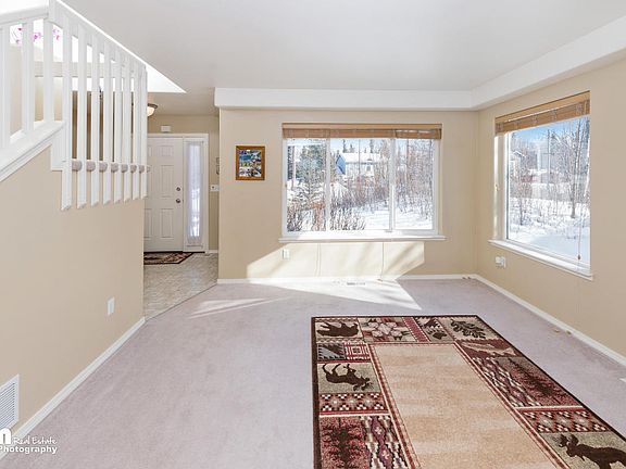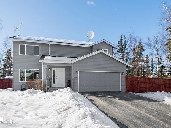 Private Midtown Estates lot with old-growth trees, lush yard and an empty neighboring lot! The quiet street is located at the end back of the neighborhood and boasts wonderful mountain views. Close to Palmer Middle and High Schools with an easy commute to Anchorage. RV parking on the side, new privacy fence, storage shed and large back deck. Lots of space for the family to run around outside and inside! Kitchen features bar seating and opens to dining and living areas with a large fireplace.