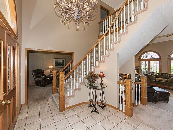This home says WOW!!! Gorgeous home on Reflection Ridge Golf Course - fairway #9! Home has a grand entrance with a curving staircase going to the upper level. The updated kitchen has a hearth room and informal eating area all with wood floors and a wood-burning fireplace (gas-log insert is also available). The kitchen has granite counter-tops with tile back splash, large island eating bar, a desk and a pantry, double ovens, an appliance barn, and some glass front cabinet doors. There are magnificent views of the golf course from the kitchen hearth room, the family room, the office, and the master bedroom. The main floor family room has a large bank of windows, a vaulted ceiling, a wood-burning fireplace and a 2-way wet bar. There is also a formal dining room and a formal living room, both with plantation shutters. There is also an office on the main floor with 2 sets of french doors, built-in book shelves and a closet. This could be used for a 5th bedroom. The main floor also has a separate room for the laundry and it has tile flooring and a built-in ironing board. The upper level has 4 spacious bedrooms including the master suite. The master has lot of windows taking advantage of the great view. The master bathroom has a large vanity area with 2 sinks, a corner whirlpool tub, a separate shower, a private toilet area, and tile flooring. There is a large walk-in closet plus another closet in the master bedroom. All of the bathrooms have tile flooring. The walk-out basement has another family room and a large play room - perfect for all of the kids' toys! The basement also has a rough-in for a bathroom and there is space for an additional bedroom. There is lots of storage in this home. The roof is a 50 year roof that was installed about 5 years ago. The home sits on a cul-de-sac, has a sprinkler system on a well, has a wood deck, an iron fence, and an incredible view of the golf course. There is also a circle driveway and a 3 car garage. Home is in Maize school district and there are no special taxes!!!