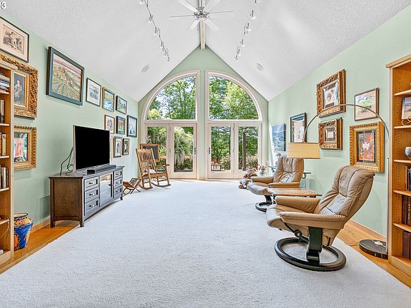 - Features: Ceiling Fan, Deck, Fireplace, French Doors, Living Room Dining Room Combo, Vaulted Ceiling