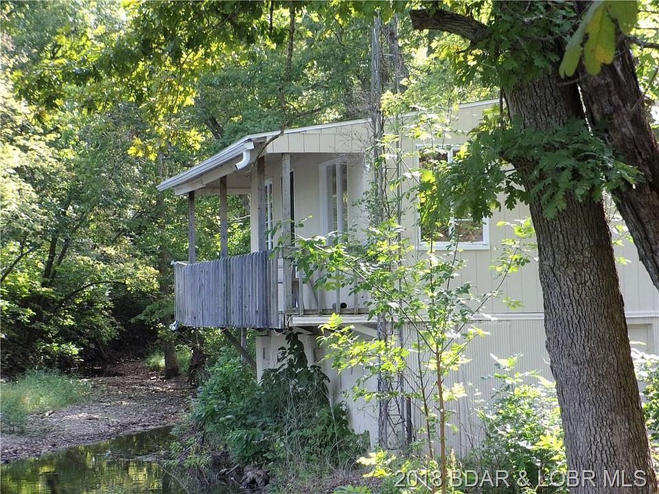 A great way to start at the Lake! You can literally sit on your lakeside covered porch and cast a line in the water! There is a natural spring pool just behind the big outbuilding. Enjoy this serene, private, quiet country setting with no neighbors next to you. Lots of parking and play room on level ground, 2 driveway entrances, a 24x24 metal barn/garage/building for your vehicles and plenty of storage, 16x10 shed with electric (for newer septic) and even has bunk beds in it. Home has 1 large BR, 1 BA with shower/tub combo. New roof in May 2018, baseboard heat and wall A/C unit, newer approved septic system. 2 restaurants in the cove and a marina just out of the cove. Includes a shared dock just down the road on community easement, 4th dock (with a slide) from the house. 2 boat ramps in the area. Furnishings currently in the house will stay. Seller has Ameren permits for dock and deck on the house. Take a look!