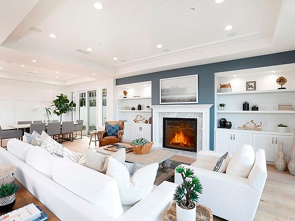 This new construction custom home is situated on a superb lot offering beautiful and unobstructed panoramic city light and mountain views in the coveted "Port Streets" neighborhood in Newport Beach. Completed in 2018 and located just steps from the association pool, spa, tennis and basketball courts, the 5 bedroom, 5.5 bath residence is drenched in natural light and utilizes chic, modern finishes throughout the spacious open floor plan. High ceilings and large windows punctuate the expansive first floor, which unfolds around a central courtyard with television, offering seamless indoor-outdoor transitions through multiple sliding glass doors. A formal dining room and welcoming family room with fireplace, are flanked by a wall of folding glass doors revealing the rear yard with fire pit that basks in the expansive views. The impressive chef's kitchen features top-of-the-line appliances, center island clad in a marble waterfall countertop, black granite counters, and large walk-in pantry. Highlighted by exposed wood beams and a show-stopping chandelier, the second level of the home presents a versatile loft space, 3 en-suite bedrooms and a luxurious master retreat with fireplace, spa-inspired bath, sizeable walk-in closet and private balcony to revel in the scenic views. Additional highlights of this stunning home include 1st and 2nd floor laundry rooms, large Dutch front door, a main-level bedroom or office with bath, home surveillance cameras and an oversized 2-car garage.