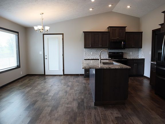 Built in 2020 by Cole construction, this beautiful 3-bed, 2-bath home boast 1470 sf on the main to include an open plan with laminate flooring throughout except for the carpeted bedrooms. The kitchen has granite countertops, all the appliances and a large pantry. Main level laundry. The master suite has an oversized shower, dual vanity & walk-in closet. Full unfinished basement, covered patio, sprinklers & an oversized 2-car garage. The backyard neighbor is one of the Summerlon Ponds. Very special property. Call Brian Delzeit @ 620-408-8816.