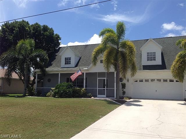 Good Morning! If you're tired of the "all-the-houses-look-alike" syndrome, come take a look at this Cape Cod style two story home with dormer windows and a rocking chair porch. It's different! The living area is 2464 sq.ft., which means it's probably the largest 3/2/2 pool home you'll see in Cape Coral at this price point. While there's a guest bedroom on the first floor, the master bedroom and a HUGE second bedroom are upstairs. Their closets are really large too. There's a good-size pool (and spa) facing south.