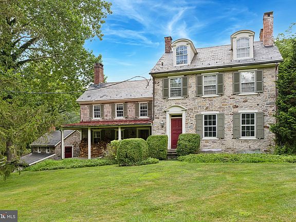 Welcome to 2320 Turk Road, a timeless Bucks County farmhouse estate. Nestled on a sprawling lot set back from the road, this exceptional home is one of the most beautifully restored historic properties in the region. Newly renovated, it offers complete privacy, classic character, and turn-key luxury. The elegant 3-bedroom, 3.5-bath main(approximately 3,494 sq ft, the 2nd bedroom so large that you could put up a wall to form a fourth bedroom) residence with pool is accompanied by a 2-bedroom carriage house(approximately 1,200 sq ft), original stone bank barn, and picturesque spring house — all surrounded by rolling lawns and mature trees, creating a tranquil country retreat on 4.7 Acres. Dating to the late 18th /early 19th century, the main house masterfully balances preserved heritage with modern comfort. Gorgeous wide-plank floors, three working wood-burning fireplaces, and period details are paired with updated mechanicals, new central air, and reinforced infrastructure for contemporary living. Inside, you’ll find a gracious side entrance and mudroom, leading to a custom kitchen that blends timeless style with functionality. Soapstone counters, high-end appliances (Wolf, Sub-Zero, Fisher & Paykel), and a sunlit dining/lounge area are surrounded by windows — including a newly installed picture window — that flood the space with natural light and showcase panoramic views on all sides. Rustic ceiling beams and a wood-burning fireplace add warmth and charm. Adjacent rooms include a cozy formal dining room with a fireplace, an elegant entry foyer, and a grand living room with traditional woodwork and a stone hearth. The second floor features the primary and secondary bedrooms, a walk-in closet, laundry, and two full baths — including a completely transformed primary bath offering a spa-like experience. The third floor, fully renovated, has a bright, airy bedroom and en- suite bathroom with handcrafted zellige tiles, creating a serene retreat. Beyond the meticulous design and aesthetics, additional functional and mechanical updates include new central air-conditioning, new roofing and repointed stonework. A new full-property generator services all three outbuildings, providing uninterrupted comfort and reliability. The carriage house, a fully renovated 2-bedroom guest residence, features new skylights, HVAC/central air, updated electrical, a new hot water heater, and a new roof. Every detail — from the appliances to the finishes — has been upgraded, making it ideal for extended guests, caretakers, au pair quarters, or other flexible use. A newly sheet-rocked garage completes this versatile structure. The original two-level bank barn, currently used as a gym with additional large flex space, has a new boiler and repointed masonry to ensure its structural integrity —offering endless possibilities for a home office, studio, or retreat space. Outdoors, the meticulously landscaped grounds include a newly fenced pool area and terrace, offering a peaceful setting for relaxation. The wooded backyard, with a stream that could be turned into a natural pond, adds to the serenity. Over 60 large evergreen trees have been recently planted along the perimeter, ensuring privacy and a beautiful year-round natural border. This is a rare opportunity to own a piece of Bucks County history, a bucolic sanctuary in the heart of Doylestown – just 78 minutes to Manhattan and under an hour to Philadelphia. More than a residence, this property is a warm and welcoming home steeped in history, offering classic elegance and modern luxury in one of the area’s most enchanting settings.