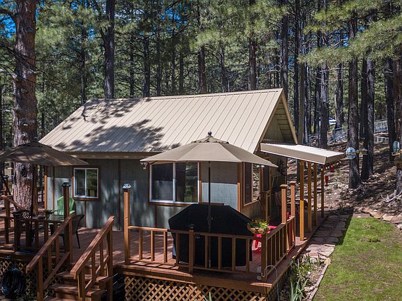 Own your own piece of heaven in Forest Lakes for under 200k! A lush 1.05 acre lot awaits you on the quiet street of Turkey Trail. The lot was professionally thinned in 2016 & Liberty Fence installed the chain link fence on property line in Sept 2018! There is a 1955 National 20ft travel trailer w/site built addition. The home has been well maintained w/portions that have been beautifully updated. Front porch is inviting & wraps to large rear deck overlooking your yard that goes as far as the eye can see. The Seller has replaced plumbing w/ pex, added new windows, new subfloor throughout, laminate flooring, new roof (2015) on house & outhouse & so much more! Outhouse features a shower, toilet & sink & is beyond cute! Site built Storage Shed w/Carport parking for ATV. See More Section. A secondary travel trailer / toy hauler on-site that conveys w/ sale, makes for great guest quarters! Home is being offered furnished, see doc tab for list. This home is a MUST SEE to fully understand the beauty & value so make an appointment today! **Due to part of the home being a trailer this is not financeable under any traditional methods that we are aware of, seller does not wish to carry either so CASH or a "Hard Money" Loan are likely the only options available. If you are looking to finance please research or discuss with agent prior to viewing, we don't want to waste your time or the Sellers** Forest Lakes is at the top of the Mogollon Rim which is about a 2 hour scenic drive from the valley. Come enjoy temps 30-50 degrees cooler than Phoenix in the Tall Ponderosa Pines. There are several trout stocked LAKES in the area. NO HOA! We do have a friendly community that holds events and has a community center. FLOA is the homeowners association, it is 100% Voluntary and operates by donation. Forest Lakes is the place to be so don't miss out on your opportunity to own you own escape from the heat!