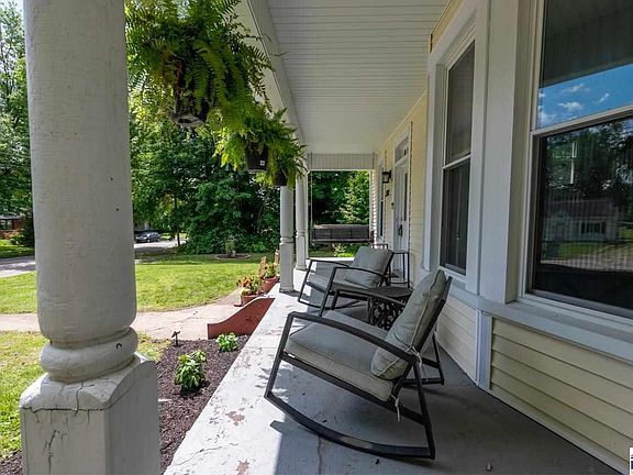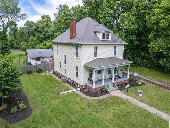 Tucked away on 1.38 lush acres within city limits, this stunning property offers the perfect mix of historic charm and modern comfort, all wrapped in a serene, storybook setting. Surrounded by wild blackberry and raspberry bushes, it feels like a hidden retreat. Step up to the charming front porch and into soaring ceilings, rich original hardwoods, and timeless details throughout. The living room centers around a cozy gas log fireplace, while original pocket doors lead to a spacious dining room made for memorable gatherings. The kitchen is full of character with built-ins, ample cabinetry, and all appliances included. A mudroom and half bath complete the main level. Upstairs, the expansive primary suite is a true escape with an incredible custom walk-in closet and full en-suite bath. Two more bedrooms and a second full bath continue the home's charm, with a third floor that offers ideal space for a studio, playroom, or guest room. Outside, unwind on the wood deck with an evening cocktail, gather around the fire pit, or tend to the raised garden beds. A two-car detached garage completes this one-of-a-kind property.