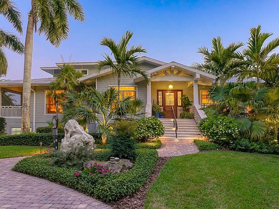 Designed for relishing the finer things in life while you entertain guests and marvel at the tranquility of water views, this one-of-a -kind home epitomizes a paradise lifestyle. Surrounded by 1.8 acres of lush flora envying Selbly Gardens, various palms and ferns embrace the coastal-inspired residence where open and screened porches overlook Phillippe Creek and magical pathways take you to the water's edge. Inside and out, this home truly allows you to feel one with Florida's natural beauty to appreciate living on the Gulf Coast. Incredible views are evident the moment you enter, complementing the stunning architectural elements and high-end interiors thoughtfully chosen for posh living. Grand finishes catch the eye in the living spaces with Brazilian cherry floors, elegant crown molding throughout, an abundance of built-ins for storage a fireplace, and complete juxtaposition of every room and connection to the outdoors. The chef's kitchen will inspire the family cook to host events for every occasion, as well as a second kitchen downstairs near the wine room, game area, exercise room and pool terrae, perfect for entertaining. The fun does not end on dry land. At the water, there is a kayak launch and a boat dock with 10,000-lb lift to fulfill your captain's dreams. After your day is complete, find solitude in the serene master suite with a private terrace including a hot tub and en-suite bath. There is plenty of space for the whole family to claim a private domain with three additional bedrooms boasting walk-in closets. A treasured oasis to live out our waterfront wishes; this unique estate is everything you've wanted and more.
