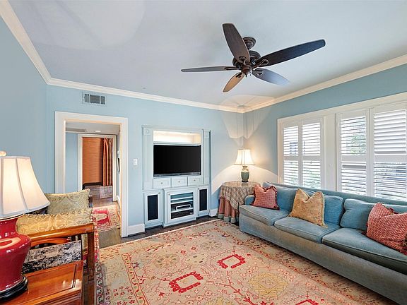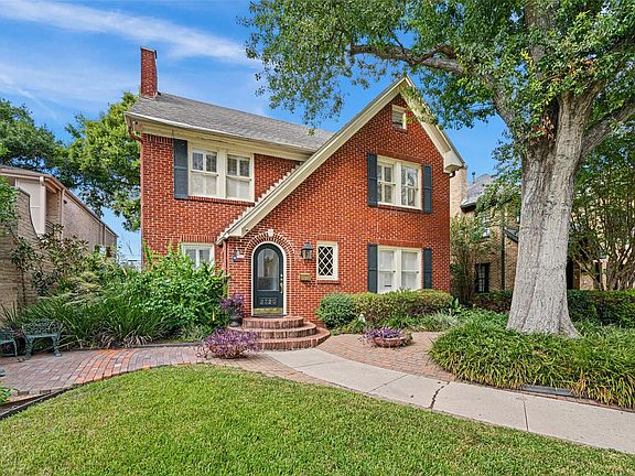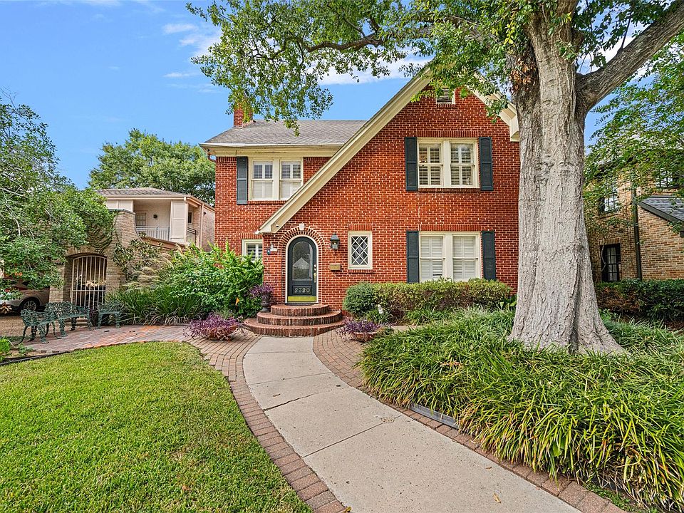 Charming and full of character, this 4-bedroom, 3½-bath Southampton-area home + guest quarters is perfectly located within walking distance to Rice Village. Rich in architectural detail, it features original hardwood floors, plantation shutters, spacious secondary bedrooms, generous formals, and extensive millwork throughout. The kitchen offers marble countertops, Sub-Zero refrigerator, under-cabinet lighting, breakfast bar, built-in desk, and a sunny breakfast room. Entertain with ease using the dry bar with wine chiller and climate-controlled wine room. The spacious primary suite includes two walk-in closets, double vanity, garden tub, and frameless shower. Detached garage includes quarters with conditioned storage, cedar closet, and full bath with frameless shower. The backyard features an extensive brick paver patio, summer kitchen, and decorative fountain.