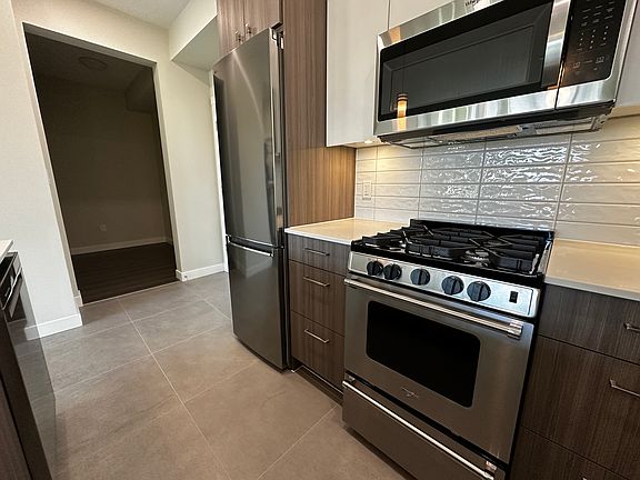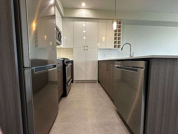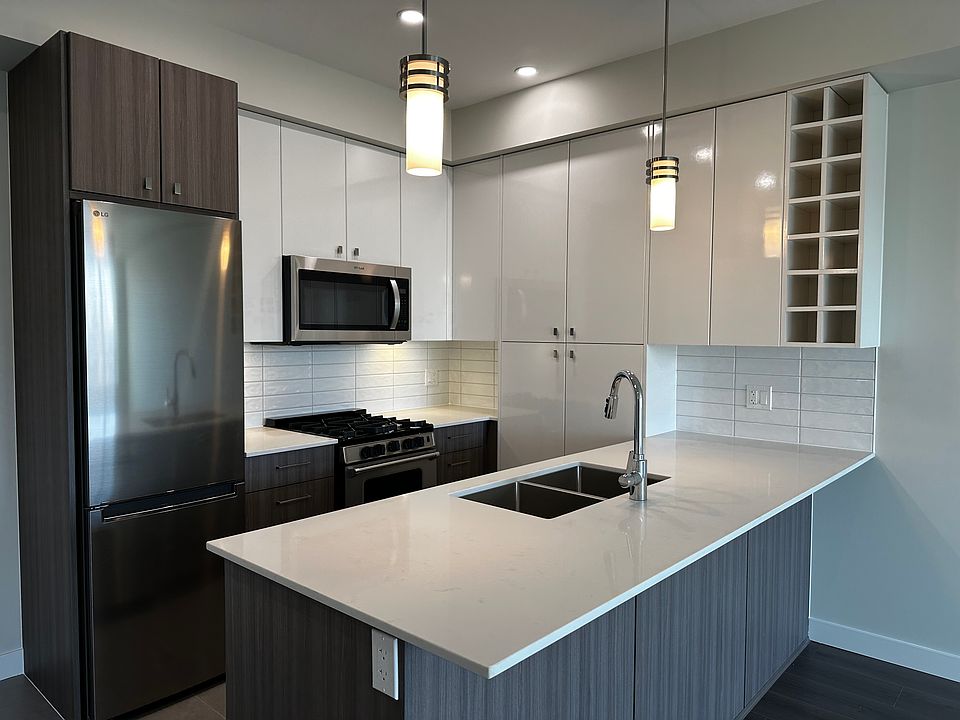 This bright and airy home features high ceilings, an open layout, central A/C, and forced-air heating. Enjoy partial water and mountain views, plus a spacious balcony with gas hookup. The modern kitchen offers quartz countertops, a gas stove, and stainless steel appliances. 1 Parking + 1 Storage Locker included. EV charger included at your parking stall.