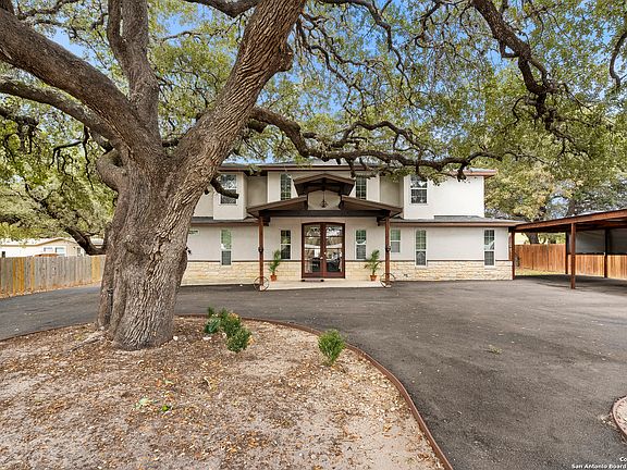 Luxurious Gated Home in Sandy Oaks! Experience the perfect blend of country charm and city convenience in this stunning 4-bedroom, 2 full-bath and 2 half-bath home, just 20 minutes south of downtown San Antonio. Set on a gated lot with a beautiful circular driveway and covered 3-car carport, this home welcomes you with impressive curb appeal and a majestic oak tree in the front yard. Inside, the open floor plan flows into a gorgeous kitchen featuring dark wood cabinetry, stainless steel appliances, and bar seating-perfect for hosting and daily living. The primary bedroom is conveniently located downstairs, as well as an office and an additional bedroom, while two spacious bedrooms and a cozy loft await upstairs. Outside, a grand backyard with a large covered patio and beautiful oak tree offers ample space for gatherings and relaxation. Enjoy the tranquility of a country lifestyle with quick access to city amenities in this luxurious Sandy Oaks retreat.