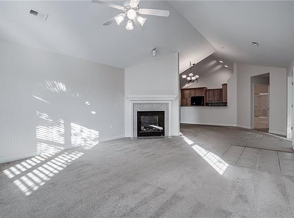 - Features: Carpet, Ceiling Fan(s), Fireplace