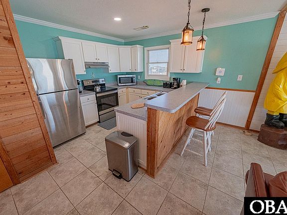 Designed for entertaining, the home boasts a full bar area in the great room—perfect for hosting friends and family. The charming coastal décor and updated flooring throughout create a warm, inviting vibe that captures the essence of beachside living. Just minutes from Real Watersports—the epicenter of surf culture—and the Salvo Day Use Area, where calm, shallow waters invite kayaking, paddleboarding, and sunset picnics, this location blends adventure and serenity.