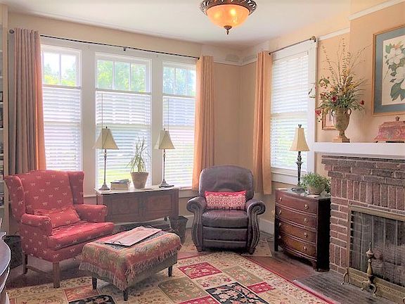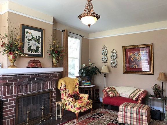 Formal living room, formal dining room, kitchen, 2 bedrooms, 2 baths, office, laundry room, covered front porch and back patio, wired shed, fenced yard - This charming brick home is loaded with amenities - 10' ceilings, hardwood floors, built-in shelving in living room, ornate fireplaces, covered porches, brick patios, fire pit, covered bar-b-que area and remodeled bathrooms that are beautiful!! Under termite bond. Don't miss out on this wonderful house in popular Lake Bottom area!!