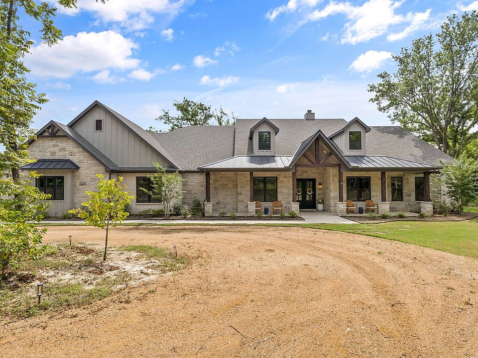 Gorgeous, one-of-a-kind single-story custom home nestled on nearly four private acres! Peace and serenity await as you arrive down your tree-lined driveway, flanked on both sides by mature trees, creating a storybook entrance that sets the tone for the privacy that surrounds you. While tucked away from the hustle and bustle, the property is still conveniently close to major highways, shopping, and dining, offering the best of both worlds—country living with modern conveniences. Bring your horses and livestock, as there is no HOA, you are outside city limits, and there are no city or MUD taxes. The charming front porch welcomes you in, while the functional open-concept floor plan is designed for both daily living and effortless entertaining. A hidden pantry disguised behind cabinetry doors, a large built-in refrigerator, and seamless flow to the screened outdoor living space make this home both stylish and practical. Additional highlights include a bonus room for a safe room equipped with a sauna, a Texas basement above the oversized four-car garage for extra storage, and an impressive smart home system with control of most lights, shades, and fans. A whole-home speaker system extends into the living room, kitchen, master suite, loggia, and dedicated media room with full surround sound. Security features include a monitored system and eight outdoor cameras for peace of mind. Whether you are enjoying movie nights in the media room, quiet evenings on the porch, or hosting gatherings with spaces that flow seamlessly from indoors to out, this home offers it all—a rare retreat that combines privacy, convenience, and thoughtful design, ready for its next chapter.