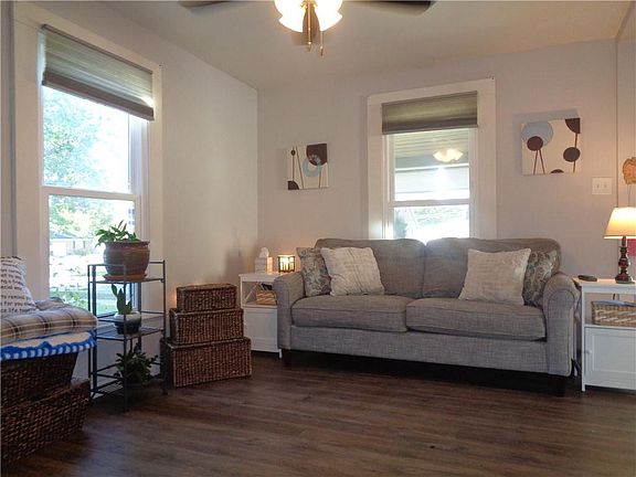 Home features 3 bedrooms, full bathroom, living room, dining room, kitchen, family room, partial basement, fenced in year, covered porch, patio and 2 car detached garage. Many recent updates include kitchen cabinets, counter tops, interior and exterior doors, 10 x 16 patio, landscaping, window covers, garage door opener, flooring, and appliances. Home offers stainless steel appliances, radon system, ceiling fans. Centrally located in Columbus, less then 2 blocks from Donner Park.