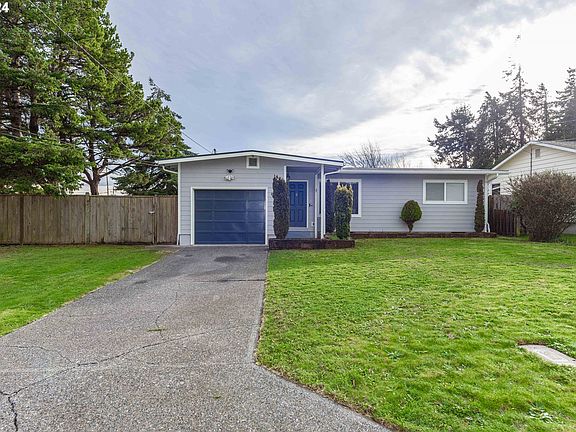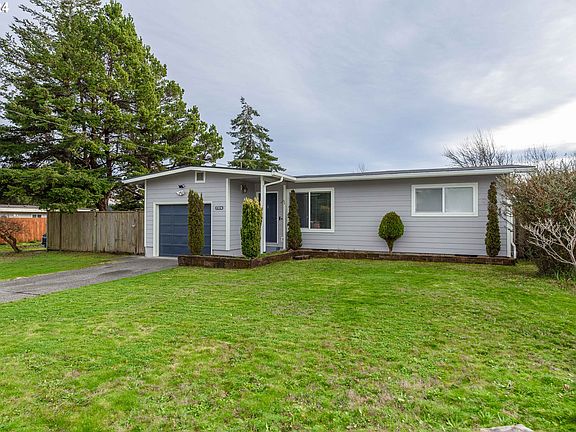 Curb appeal! Move-in-ready North Bend home with big fenced in yard located on a corner lot. Home features vinyl plank flooring, open kitchen to dining, updated kitchen and bathroom, new stainless steel appliances and new water heater. Kitchen has nice new cabinets and backsplash, island with skylight above and excellent functionality throughout. Home has 3 bedrooms and 1 full bathroom with a great layout. Living room in front of house and family room with woodstove and slider to fenced in back yard. Firepit in concrete patio. Vinyl windows, fiber cement siding and newer membrane roof make this home easy to maintain and ready to move in to. Come see today!