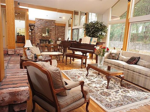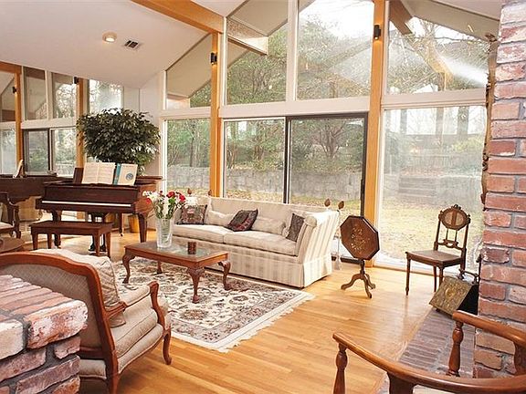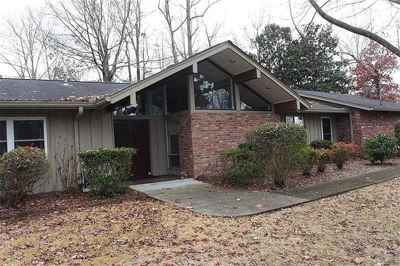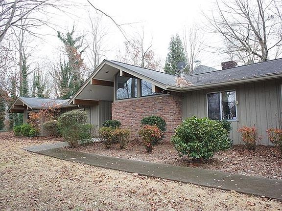 Mid-century modern! Sprawling, hard-to-find contemporary ranch filled with light from gable windows throughout this fabulous home. Exposed brick walls, hardwoods in living space, halls, double-sided fireplace make this home a rare opportunity. Master suite features wall of windows and French doors, two room-sized closets and bath with separate shower and soaking tub, double vanities. Large, level and tiered backyard features extensive hardscape, separate workshed and garden area. Popular, heart-of-Dunwoody neighborhood with optional membership in community swim/tennis.
