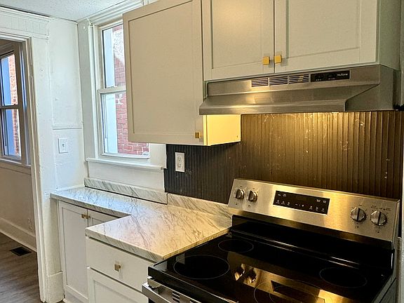 3BR, 1 bath home with vinyl plank flooring throughout. Also includes a stove, fridge, central AC, W/D hookups, extra storage in basement, large backyard, and parking spot in the rear. Updated kitchen and bathroom.