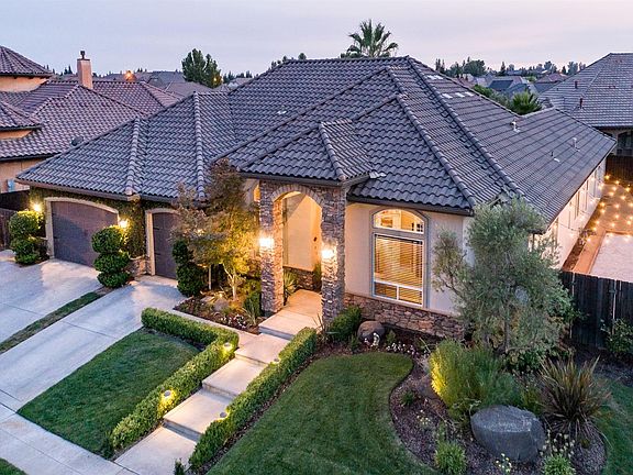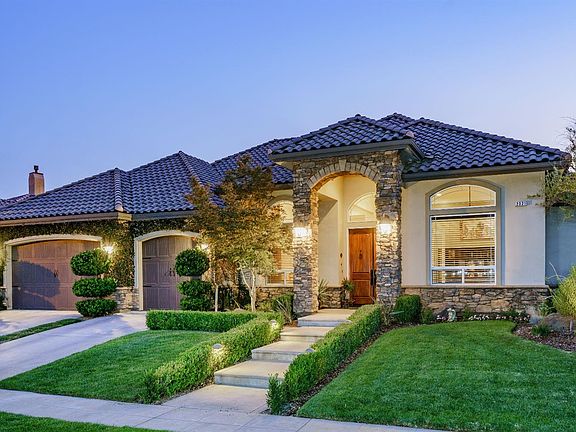 Bellamontagna 4BR-3BA plus a large office with French doors & closet (could be 5th bedrm). Sellers are sad to leave this very loved, one-owner home due to job relocation. Wide open floor plan & giant windows extend view into a beautiful big back yard, on a 12,500 sf lot. Gourmet chef's dream kitchen: 48 inch Thermador gas stove, 6 burners, griddle & 2 ovens, blt-in refrig, ogee-edge granite, antique white cabinets to ceiling, farm sink, large island w/sink, wine & beverage fridges, desk, pantry & spacious breakfast area. Great rm features wide crown moldings, custom entertainment cabinet; large formal dining rm fits long table. Hardwood & travertine floors. Elegant master bath: travertine counters & floor, spa tub & separate shower. Isolated BR & BA. Back yard has pebbletec pool & spa, Bocce Ball court, big patio for outdoor dining, raised garden beds. Oversize 3-car garage accommodates full size crew cab pickup, cabinets, attic storage. Clovis N HS. Fugman Elem.