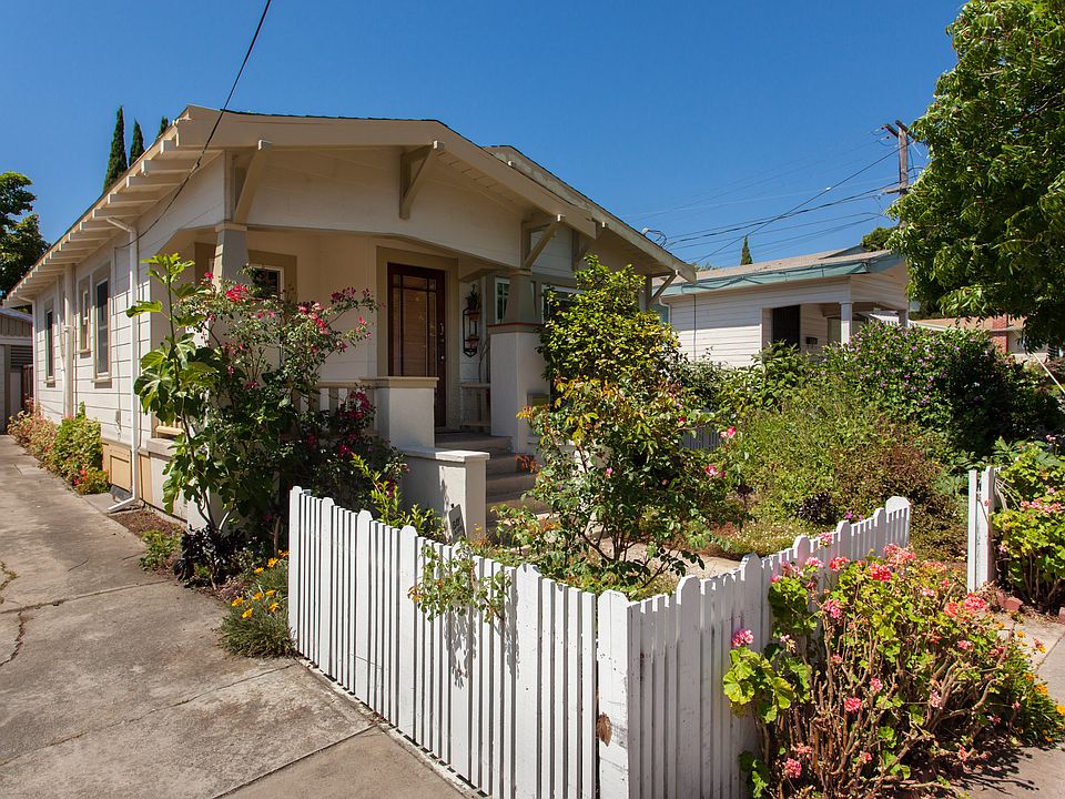 This sun-filled charmer has hardwood floors, dual pane windows, and a beautiful wood-burning fireplace in the living room. It also features an updated kitchen with granite counters, a cozy breakfast nook, and stained glass windows. Detached bonus room can be office, art studio, or storage. Beautifully landscaped yards are perfect for entertaining!Features include:* 2 bedrooms, 1 bath* 840 sq. ft., 3,600 sq. ft. lot* Built in 1923* Updated kitchen* 1 car garage/carport
