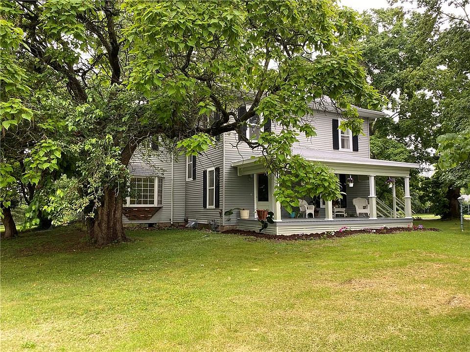 AMERICAN FARMHOUSE...with city amenities! An inviting front porch makes a stunning first impression and is perfect for enjoying rainy afternoons and moonlit nights. A large living room with fireplace and formal dining room comfortably accommodate both large and small groups. Blending the old into the new, the kitchen features a functional island with gas range/oven, tons of custom cabinets, and updated appliances. The breakfast area is highlighted by two bay windows that flood the space with light and frame great views of the Catalpa tree. Beamed ceilings and a wood stove add character and warmth to the spacious family room. A 6'x24' patio is ideal for outdoor entertaining and relaxation. The functional home office does double duty as a handy mud room. A charming brick terrace is a great spot to savor a morning cup of coffee while indulging in the shady landscape. Upstairs, the immense master suite is a personal retreat. A large walk-in closet, three additional closets, a window seat and laundry closet will delight the most serious clothes horse. A 6'x24' deck provides a lofty space to relax. Three additional bedrooms, with original wood floors, complete the second floor. The basement rec room is the perfect escape to let loose, enjoy movie night, or get in your favorite work out. Outside, you will discover peach, cherry, pear, apple, and walnut trees, strawberry and asparagus patches! There is also a tool house (with new electrical service) with double carport, a "pool house" with water run to it, a 32' deep well and a large, fenced area for your four-legged friends. Don't wait, make your appointment to see this one-of-a-kind property today!