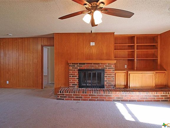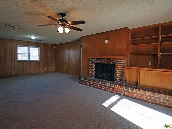 Conveniently located, this home is on a corner lot for plenty of lawn in front and back. The backyard is overlooked by a spacious covered patio and there is a generous storage building as well. The floor plan includes a great room with brick fireplace with a long hearth ideal for decorating and built-in shelves and cabinets. Part of the great room could be used as a dining room and the kitchen includes an eat-in breakfast area as well. The kitchen has plenty of cabinets and drawers for storage in addition to a built-in microwave above the glass cook top stove. Bedrooms each have 2 large closets and the baths have tile floor.
