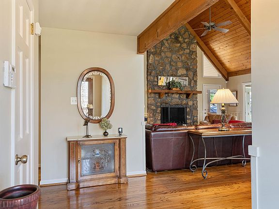 Rustic Custom Built 'One-Owner', ranch-style home on finished basement with Gunite Salt-water pool! Located in desirable community of Rock Mountain Lakes with incredible lake views of the 'Big Lake'! Walk across street and launch your boat! No gas power boats allowed. Access to 5 lakes, pavilon for family picnics and park! Home features vaulted family room with stone masonry fireplace and beautiful 4' plank oak hardwoods! Main also features dining room, office, master bedroom, master bath, large laundry, 2nd bedroom and full bath! Basement has large play/rec room with built-in shelves, stone masonry fireplace, bar area w/sink, bedroom area & full bath! 2-car garage in basement with daylight windows! You will love the views from front you see lake and back features include large screen porch, open deck overlooking beautiful pool and wooded backyard! Storage building and extra lot included in sale for approx 1.5- acres total. Great location & move in ready! Interior photos to follow.
